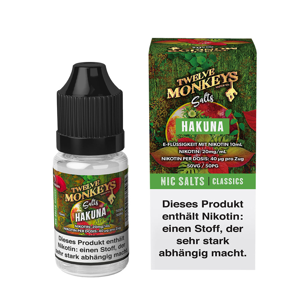 Das Twelve Monkeys Hakuna Nikotinsalz Liquid bietet eine erfrischende Geschmackskombination aus knackigem Apfel und herber Cranberry, verfeinert mit einer eisigen Frische. Perfekt für alle, die ein fruchtig-frisches Vape-Erlebnis mit einer kühlenden Note suchen. Mit hochwertigem Nikotinsalz sorgt es für eine sanfte Inhalation ohne Halskratzen. Die 50VG/50PG-Mischung ist ideal für Pod-Systeme und MTL-Geräte und ist in der 20 mg Nikotinvariante erhältlich. Ein erfrischender Genuss für alle, die das Kühlschrank-Feeling beim Dampfen lieben!