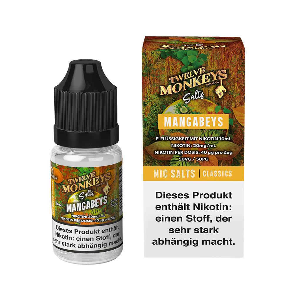 Erlebe eine exotische Geschmacksexplosion mit Twelve Monkeys Mangabeys Nikotinsalz Liquid – eine harmonische Kombination aus saftiger Mango, süßer Ananas und exotischer Guave, abgerundet mit einer erfrischenden Kühle!