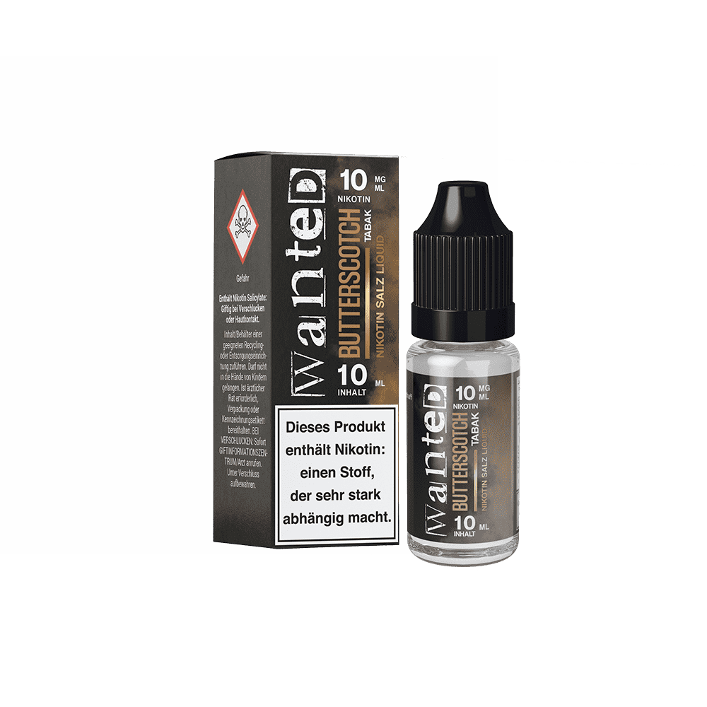 Das Wanted Butterscotch Tabak Liquid ist ein gebrauchsfertiges Nikotinsalz-Liquid mit einem Füllvolumen von 10 ml. Es vereint die Geschmacksnoten von Tabak, Likör und Karamell, was ein angenehmes und aromatisches Geschmackserlebnis im Bereich Tabak, Süßes und Getränke bietet.